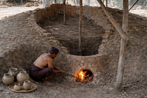 Decoration is a key aspect of Thai ceramics, incorporating surface ornamentation through stamping, impressing, incising, carving, and clay appliqué, as well as finishing techniques such as polishing, burnishing, slip application, smoke firing, and painting. Glazing enhances both functionality and aesthetics, with glazes ranging from transparent, opaque, clear, matte, crystalline, to crackle types. The firing process plays a critical role, with ancient Thai kilns classified by heat flow direction into updraft kilns, where heat rises vertically, and cross-draft kilns, where heat moves horizontally. Kilns are further categorized by structure as open kilns, underground tunnel or pit kilns, and above-ground enclosed kilns, each requiring precise temperature control.