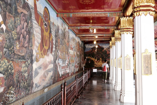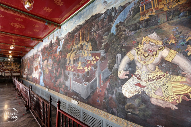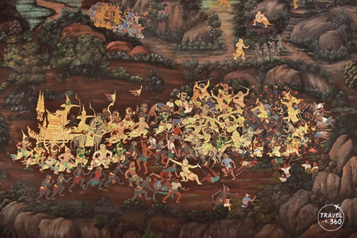 Murals and sculptures across temples and royal sites depict the story of Ramakien. The most prominent example is the mural painting on the gallery walls of the Temple of the Emerald Buddha (Wat Phra Kaew), which portrays the whole storyline of the Ramakien. These murals are renowned for their creative integration of the original story into a Thai context, architecture, and ways of life.
