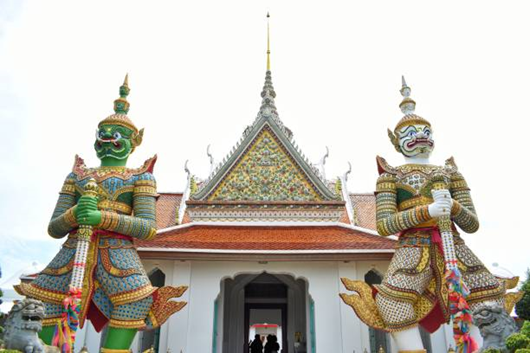In addition to murals, Ramakien reliefs and sculptures appear in numerous sacred spaces, such as the reliefs of Ramakien figures at Wat Pho, the statues of giants at Wat Arun, and countless gold and lacquer (lai rod nam) motifs that adorn scripture cabinets in temples across the country.