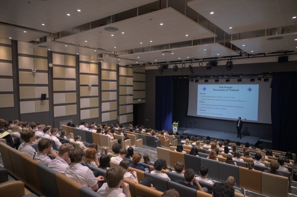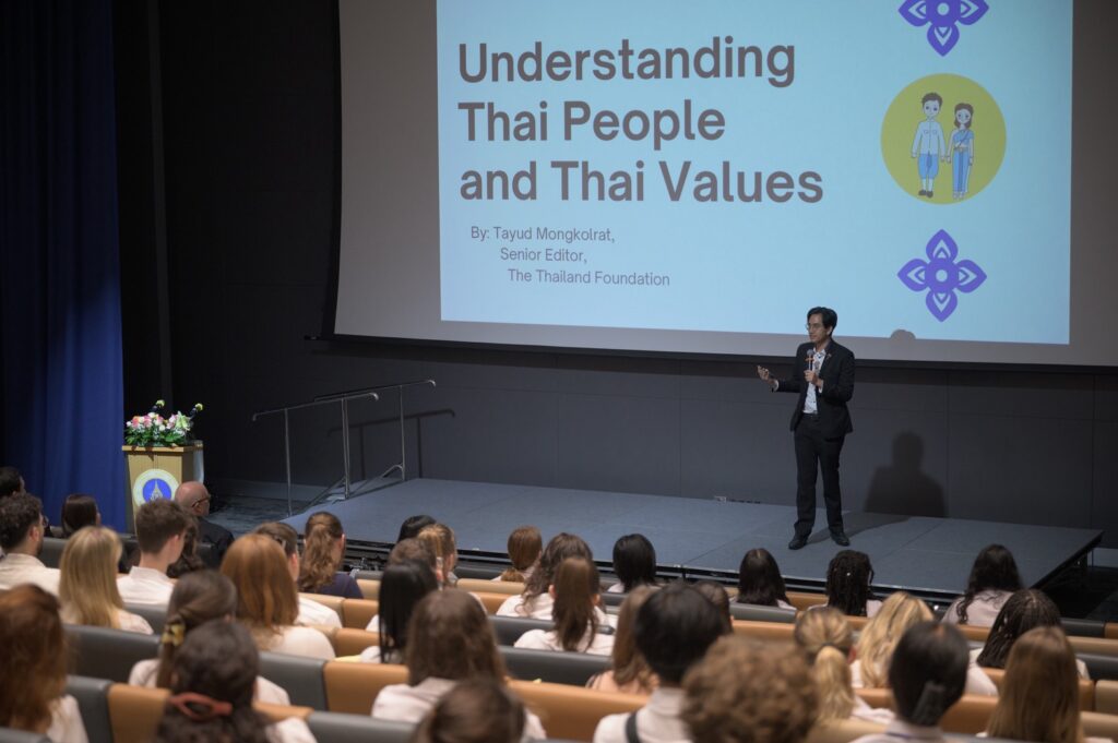 On 29 December 2025, Tayud Mongkolrat, Senior Editor of the Thailand Foundation, was invited as a guest speaker at Mahidol University International College’s orientation program for incoming international students of Semester 2/2025–2026, on the topic “Understanding Thai People and Thai Values”. The session explored key social values and ways of thinking that shape Thai cultural norms, providing participants with frameworks to building meaningful friendships and creating memorable experiences during their stay. The event was attended by nearly 200 international students from around the world.
