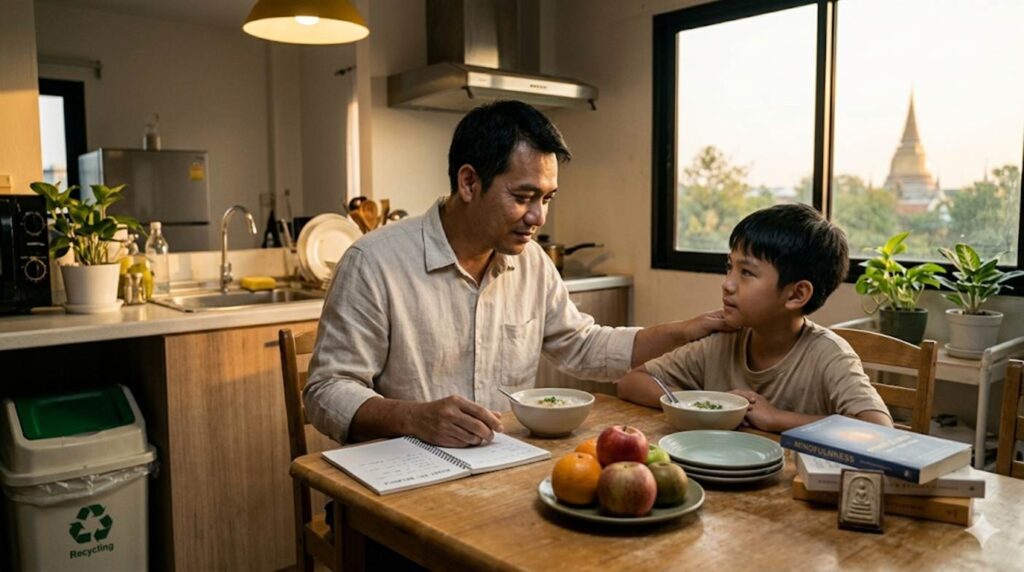 - การเคลื่อนไหวและโภชนาการ: การออกกำลังกายเป็นประจำ (แม้เพียงการเดิน 20 นาทีหรือเดิน 5,000 ก้าวต่อวัน) จะช่วยลดฮอร์โมนความเครียดและปรับปรุงอารมณ์ให้ดีขึ้น รักษาการรับประทานอาหารที่สมดุล ทั้งโปรตีน ไฟเบอร์ และไขมันดี เพื่อรักษาระดับพลังงานให้คงที่และป้องกันอาการหงุดหงิดที่เกิดจากภาวะน้ำตาลตก