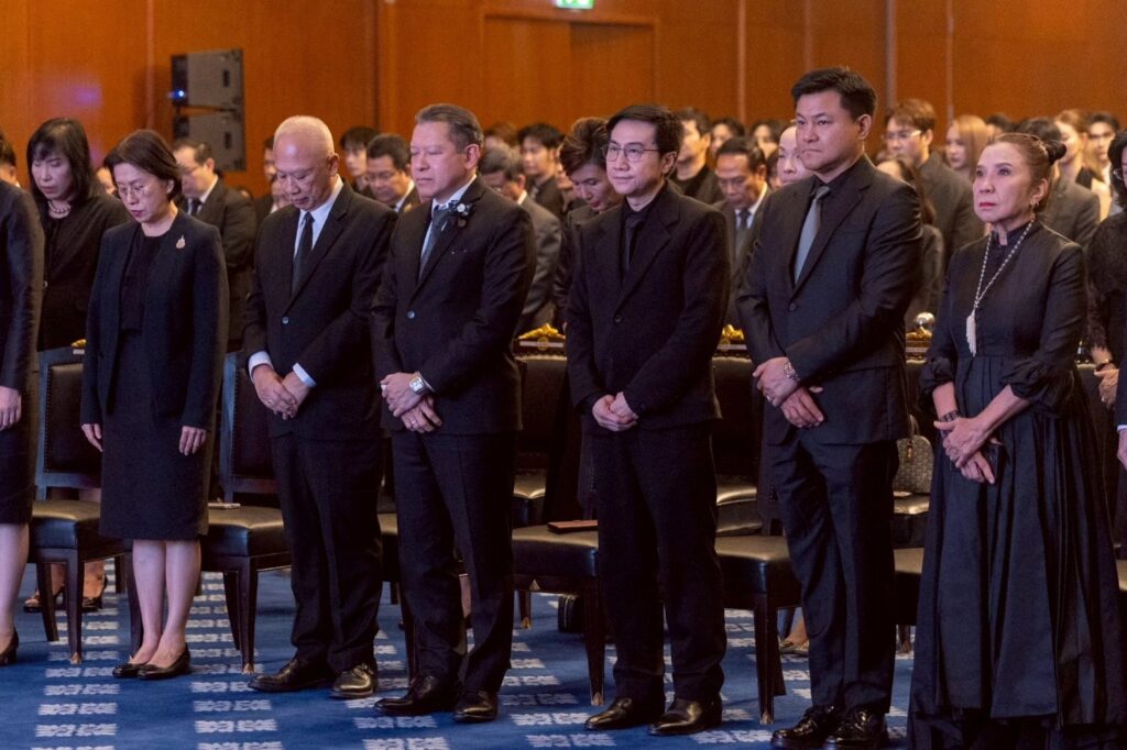 Mr. Takonkiet Viravan, Director, Chairman of the Executive Committee, Group Chief Executive Officer of the One Enterprise Public Company Limited., Ms. Busaba Daoruang, Vice Chairman, Executive Director of GMM Grammy Public Company Limited; and the management team of GMMTV Co., Ltd. They then posed for a group photo before the official ceremony began.